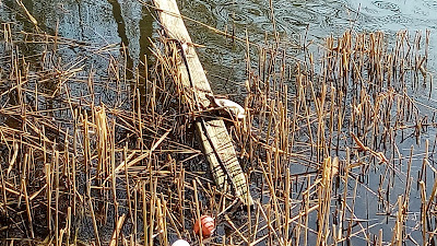 Eine Wasserschildkröte nimmt aber schon ihr erstes Sonnenbad. Obwohl der kleine See teilweise noch mit einer dünnen Eisschicht bedeckt ist. Brrr kalt, wen die dann wieder abtauchen muss.